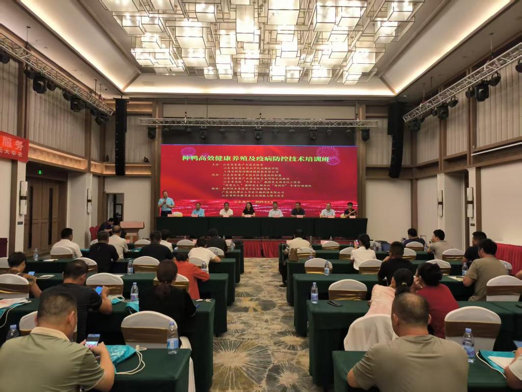2025年9月16日,由山东省家禽产业技术体系和山东畜牧兽医职业学院动物医学院主办的水禽高效健康养殖及疫病防控技术培训班在潍坊隆重举办,山东农业大学二级教授刁有祥等专家做了大会主题报告,规模种鸭养殖企业管理人员、技术人员等80余人参加。省家禽产业技术体系疫病防控岗岗位专家孙秋艳教授出席培训班并致辞。