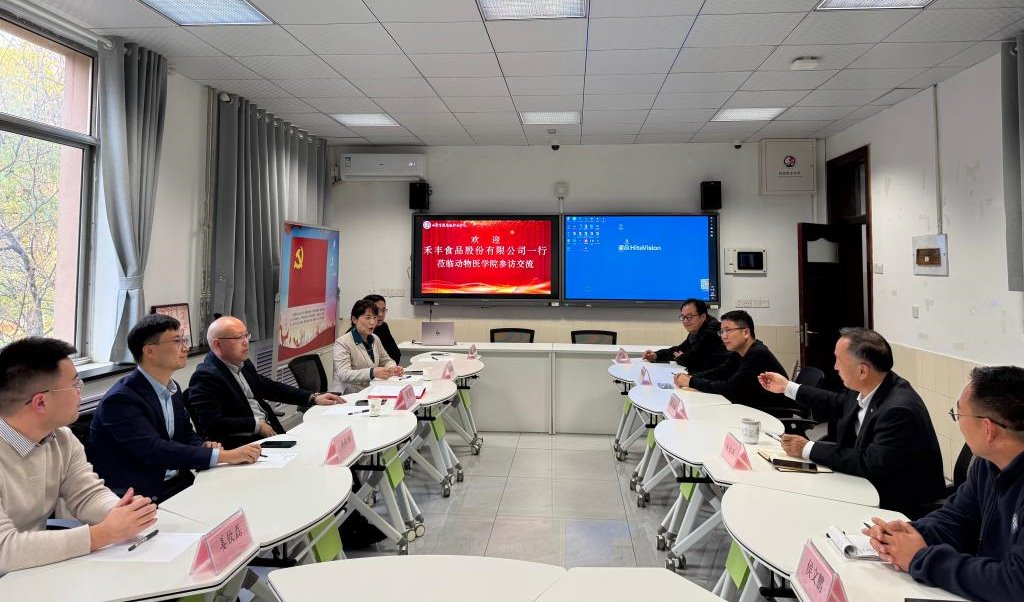 11月14日,禾丰食品股份有限公司山东区区域总监赵猛,关内区人力资源总监毛艳春一行到我院洽谈校企合作,动物医学院党总支负责人朱俊平等人参加座谈,双方就共同推动人才培养、科研合作与成果转化等进行深入的交流。