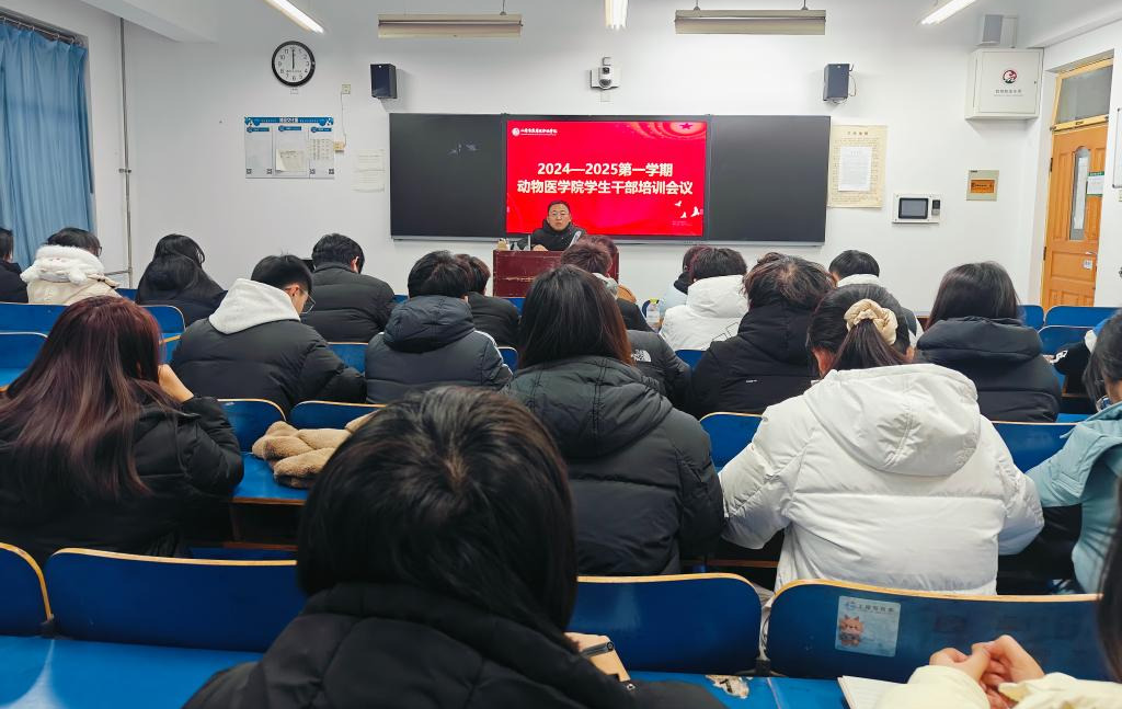为进一步增强学生干部的纪律意识,提升学生干部的整体形象,12月19日,动物医学院召开了2024—2025学年第一学期学生干部培训会议。此次培训由动物医学院团总支书记侯文鹏担任主讲,动物医学院学生会、大学生自律委员会等60名学生干部参加了培训。
